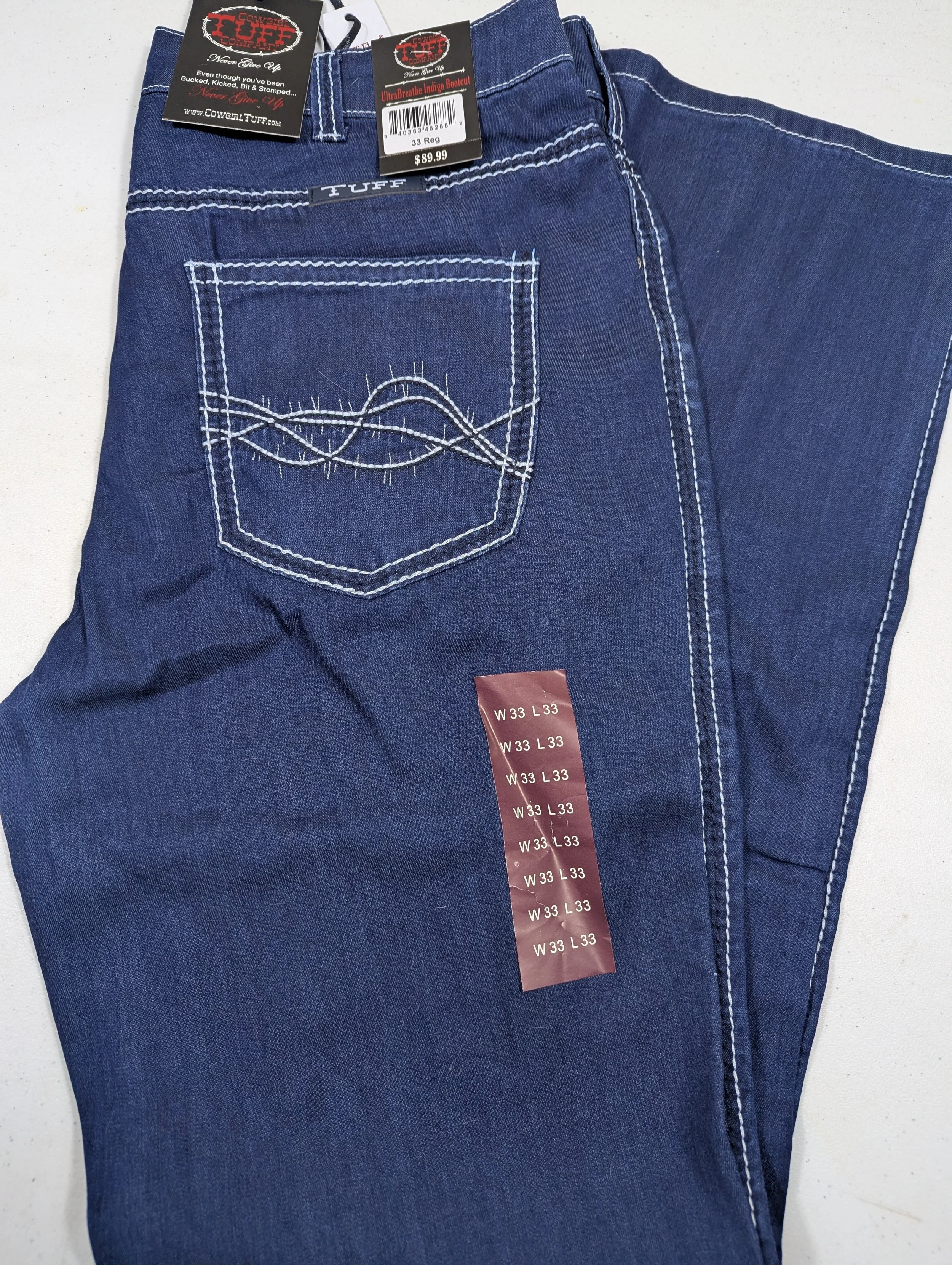 Shop › Cowgirl Tuff Ladies Jeans Image 1 of 2 Image 2 of 2 Cowgirl Tuff Ladies Jeans $45.00 Brand New 33x33 Add To Cart Added! Brand New 33x33