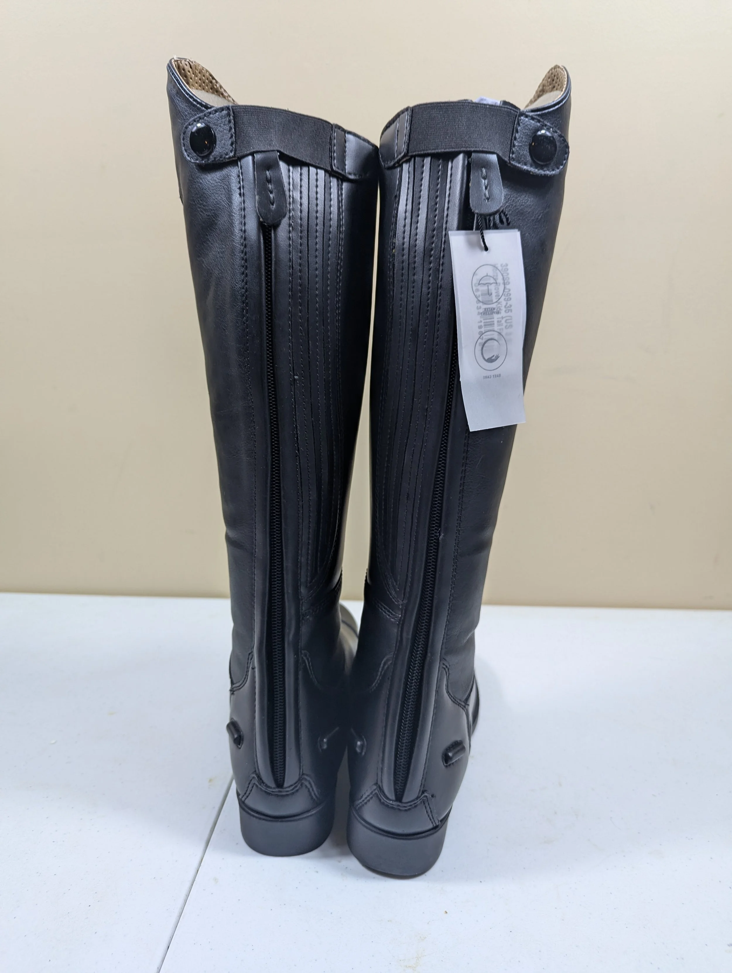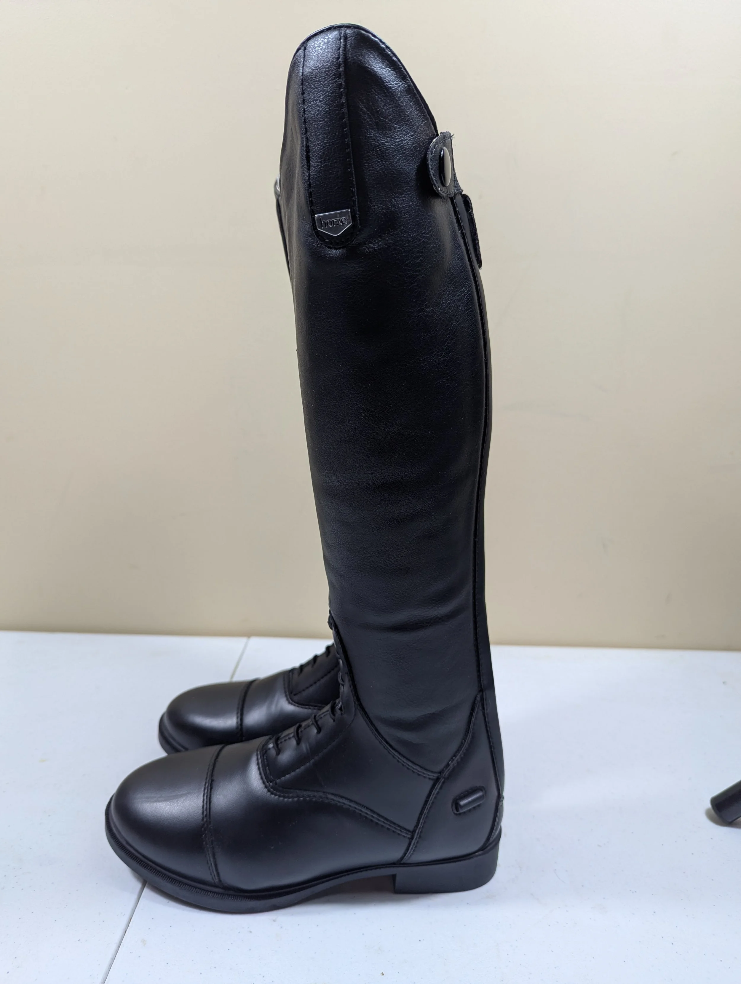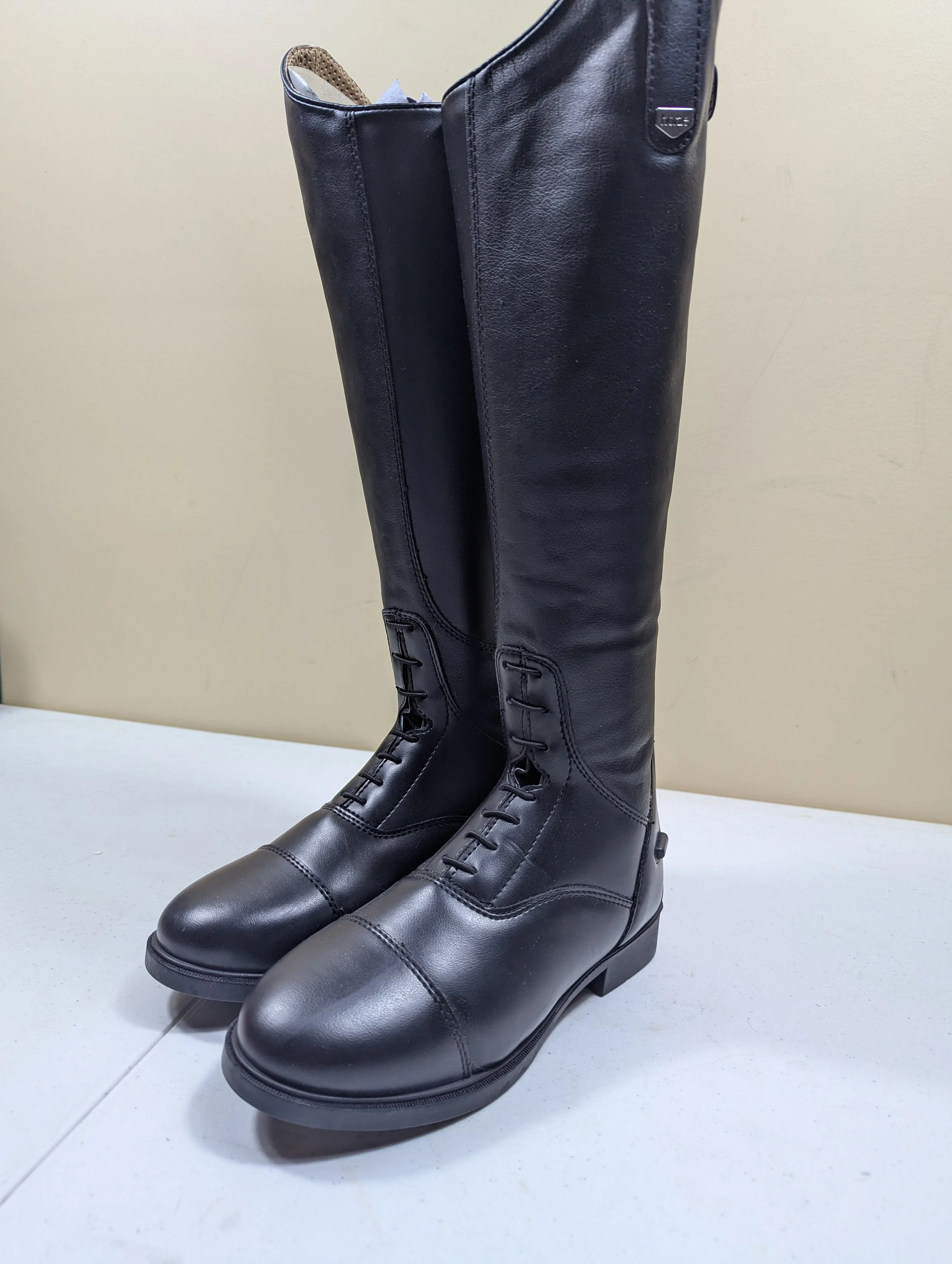 These tall boots are made from soft synthetic leather with breathable mesh lining. Elastic front laces look classic while a back zipper offers easy access. A comfortable sole makes them wearable all day long - in the saddle, paddock or around the stable. The classic style is timeless and matches little riders' outfits perfectly.